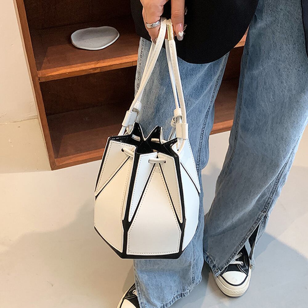 PUレザーバケツバック 六角形鞄2WAY 斜め掛け 肩掛けバッグ お洒落ハンドバッグ きれいめデザインバッグ コンパクト